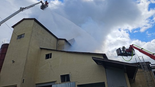 Weiters wurde die Brandbekämpfung von aussen mit C-Rohren und einem Atemschutztrupp im und am Gebäude durchgeführt.